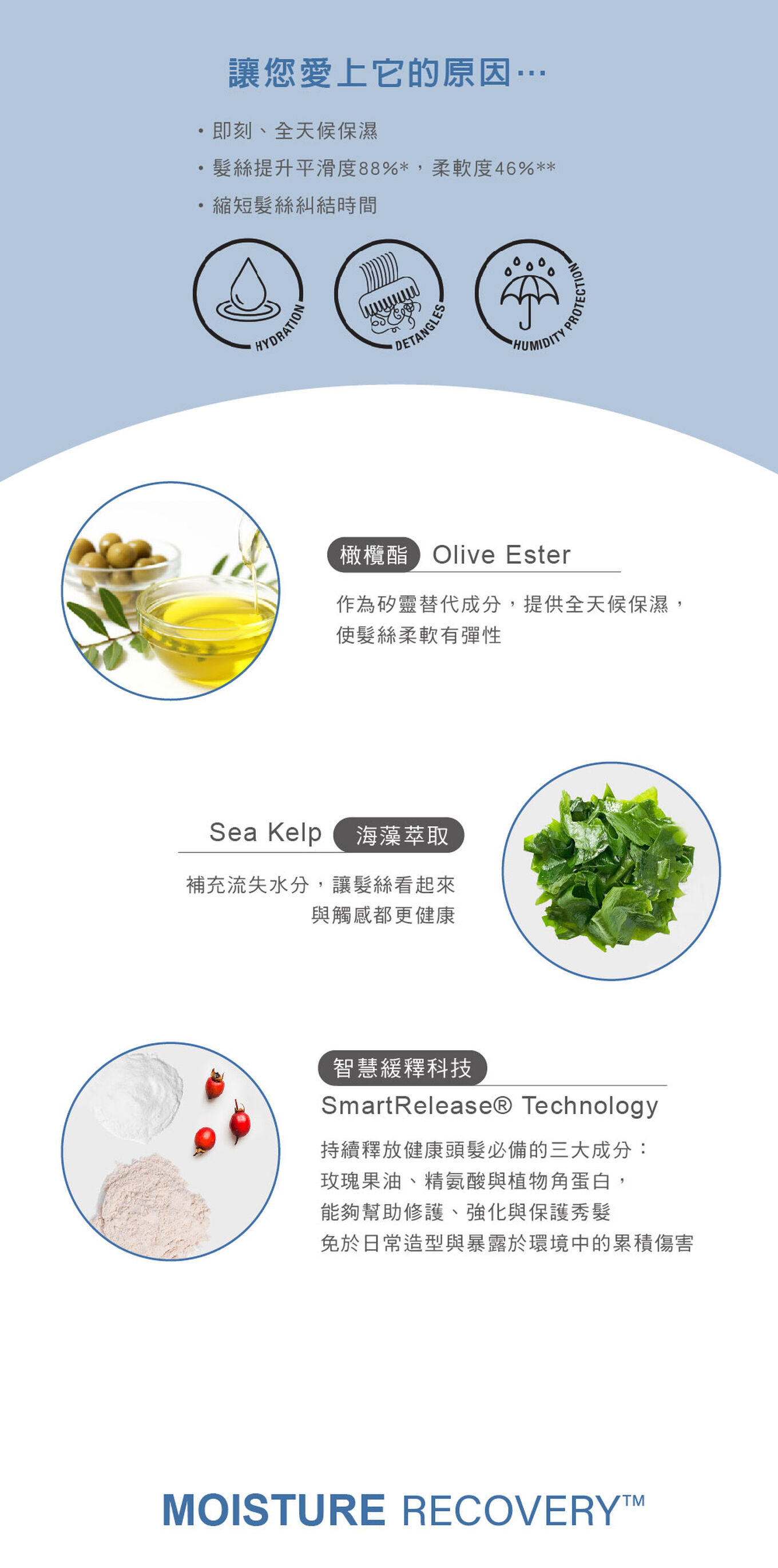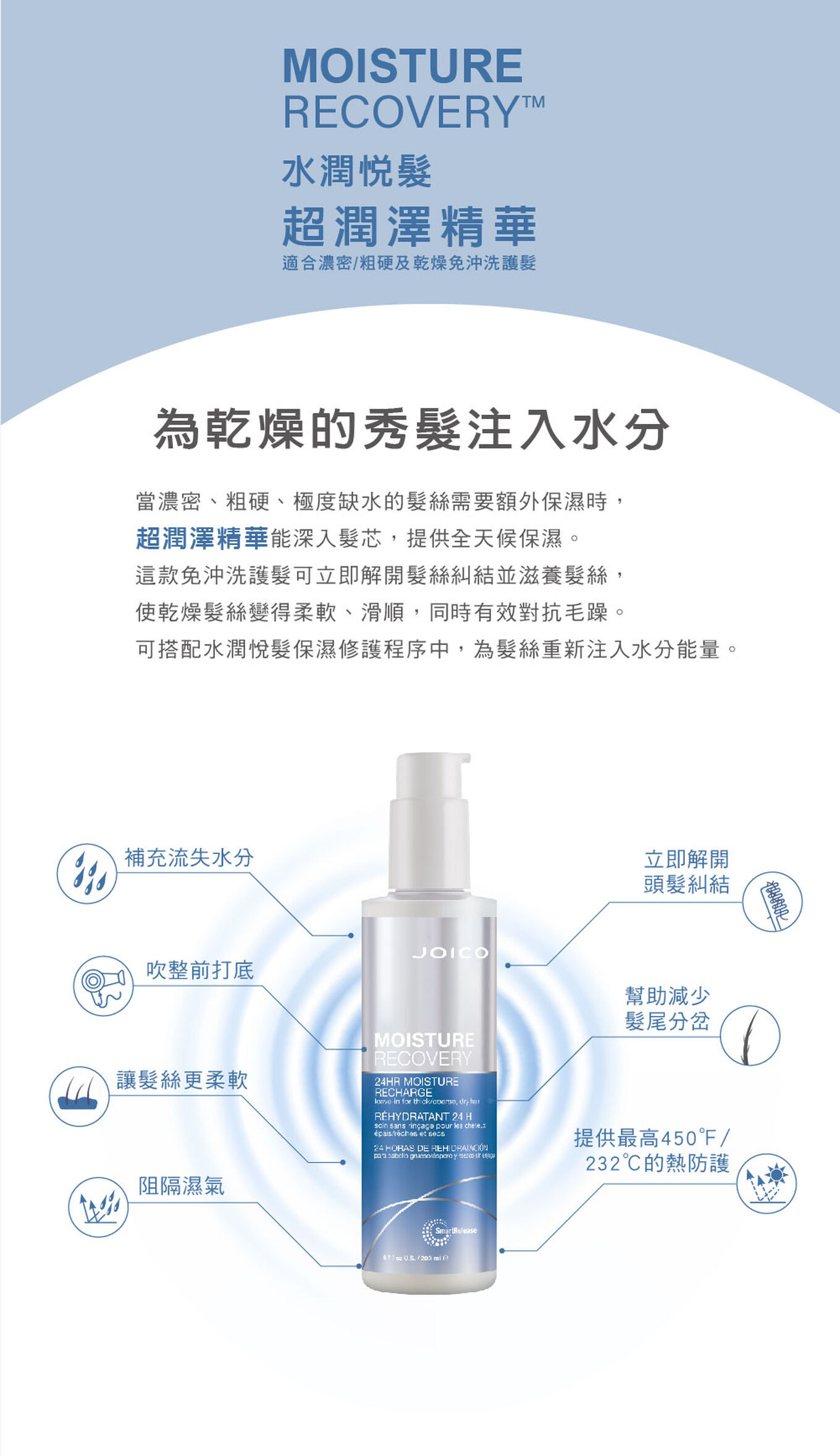 24小時保濕修護精華能深入髮絲,提供全天候保濕