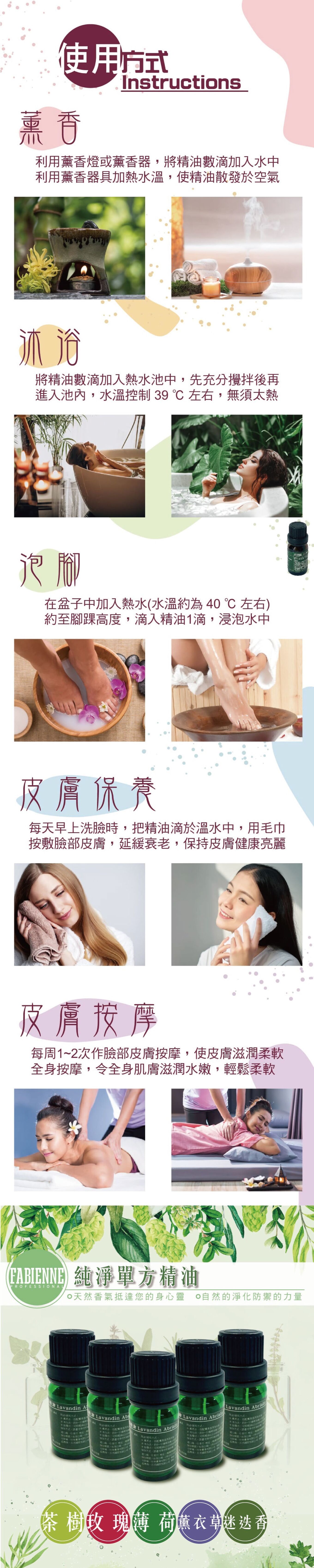 味道 薰衣草、玫瑰天竺葵、茶樹、迷迭香、薄荷